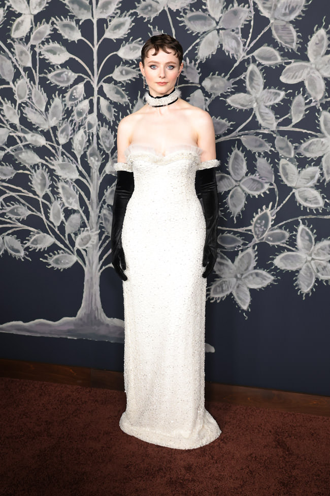 The stars of The Testament of Ann Lee kept the looks highly coordinated for the LA premiere by relying on that old red carpet standby: eschewing all color completely. Normally, we’d complain, but given the film’s subject matter, a black-and-white aesthetic makes sense.