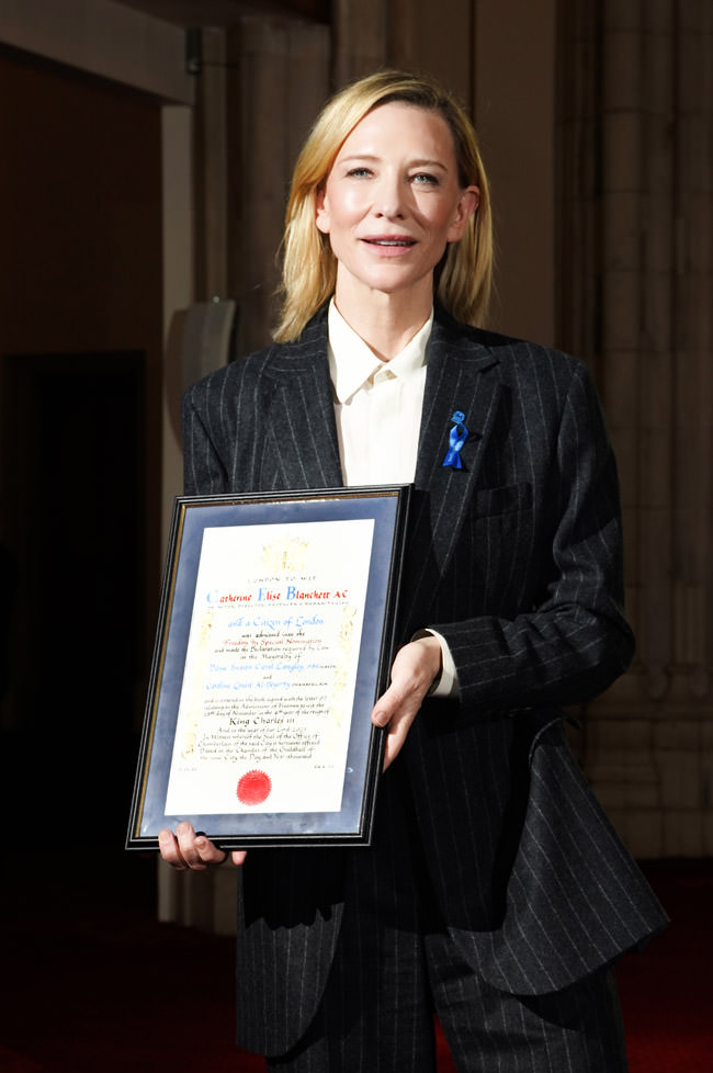 Cate Blanchett received the Freedom of the City of London award in recognition of her contribution to drama, and her work on humanitarian and global environmental issues. The Good Lady took a somewhat more relaxed approach to her style, which isn’t necessarily a bad thing. It’s not like glamour would have been appropriate in this setting. Still, we feel like we should warn you about the scrolldown. You may be disappointed.