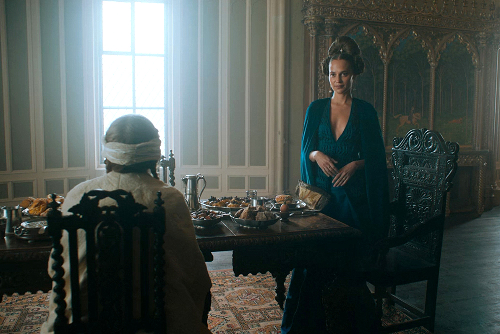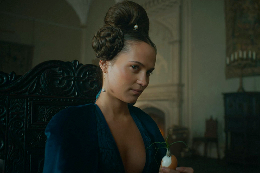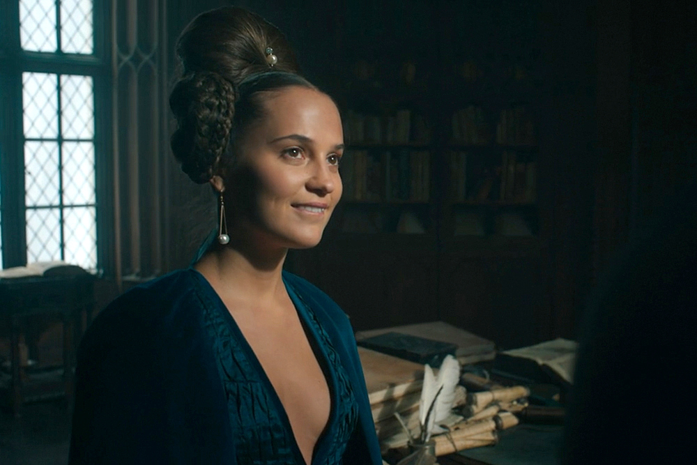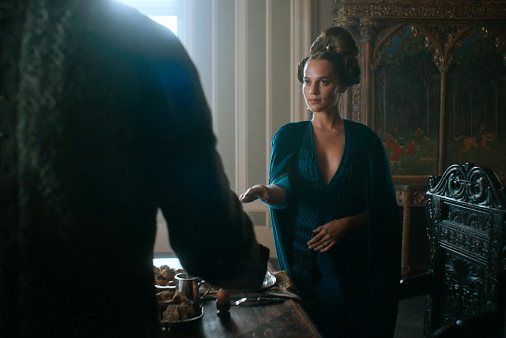 The point of Gawain’s quest, like all knightly quests, is to gain honor and remain true to chivalric principles. All throughout his journey, he’s tempted to stray from his destiny, to not pursue greatness, to run away from almost certain death. It should be noted that Alicia Vikander also plays the peasant girl that Gawain claims to love, which means her appearance here is some form of magic meant to seduce him.