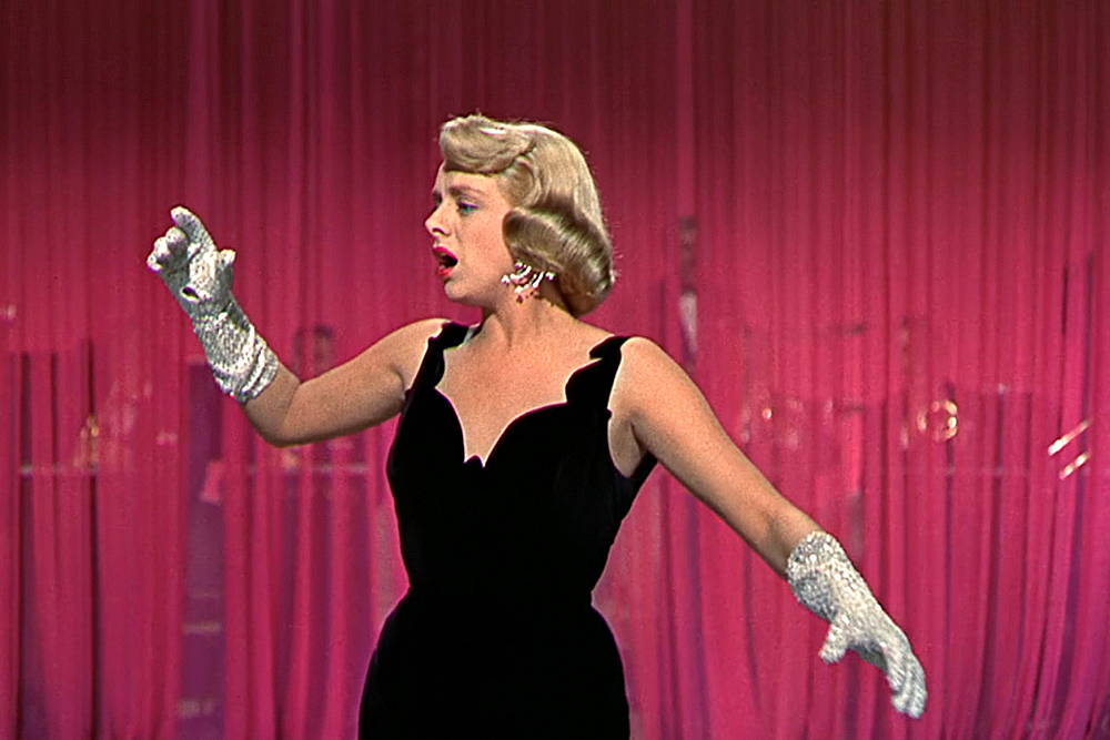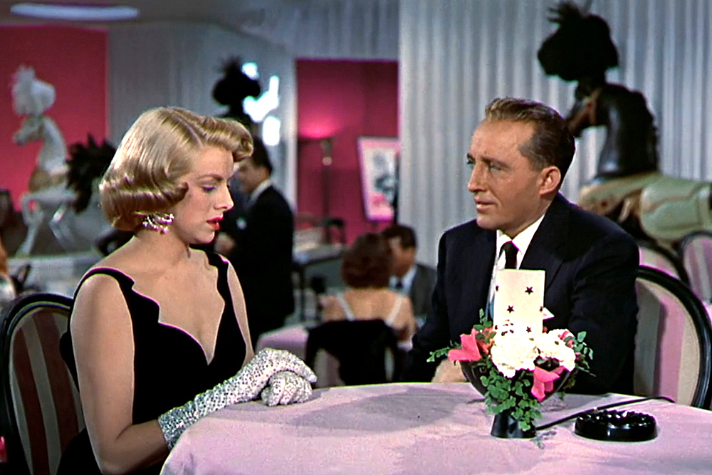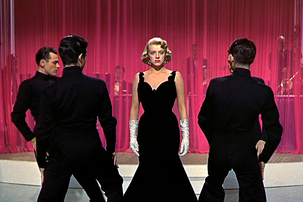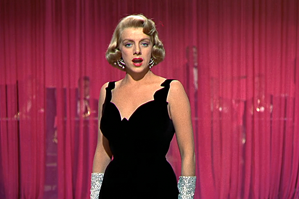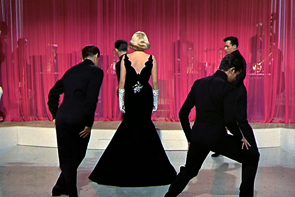 Do we really have to explain or give context to this one? Really? Okay, fine. In director Michael Curtiz’s White Christmas, Rosemary Clooney plays Betty Haynes, part of a sister singing act, The Haynes Sisters. After the sisters meet up with showmen Wallace and Davis (and strike up potential respective romances with each of them), Betty mistakenly assumes the worst of Bob and runs away to New York, where she gets booked in the Carousel Club for an engagement. Bob pursues her and is treated to one of the best torch song gowns in cinematic history, courtesy of the legendary costume designer Edith Head.