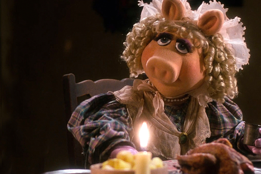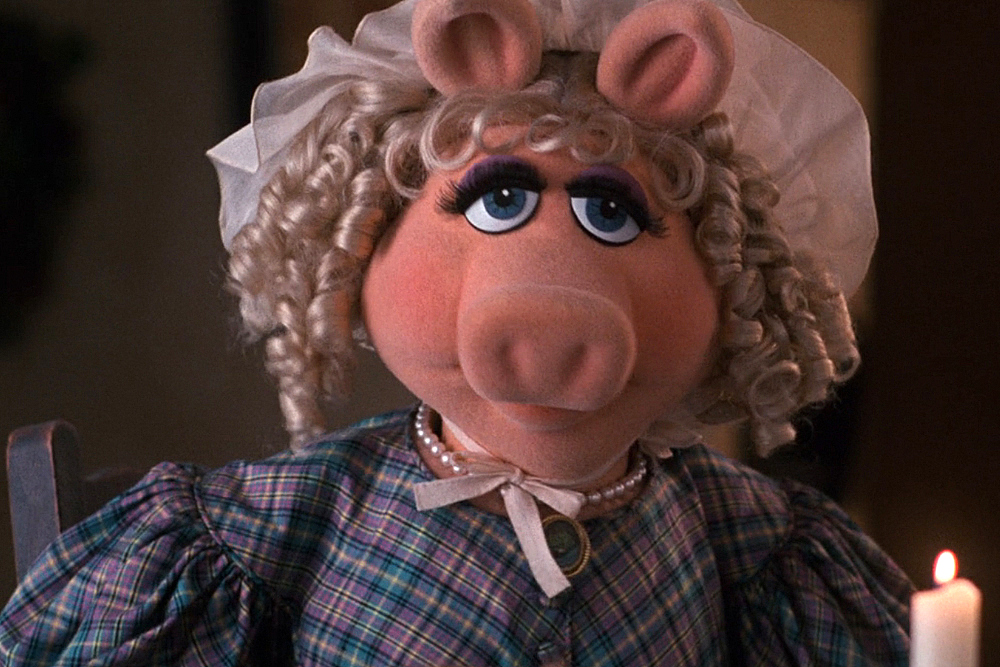 Yesterday, a depressed holiday princess! Today, a fierce Christmas mama. We figured we needed to return to a more traditional vibe after that last entry and there couldn’t be a more traditional yuletide character than Mrs. Emily Cratchit portrayed by Miss Piggy (Frank Oz) in 1992’s The Muppet Christmas Carol, directed by Brian Henson. It is to Miss Piggy’s credit that she agreed to a relatively small role in which she only gets to wear one costume and that costume is distressingly free of feathers, sequins or diamonds.