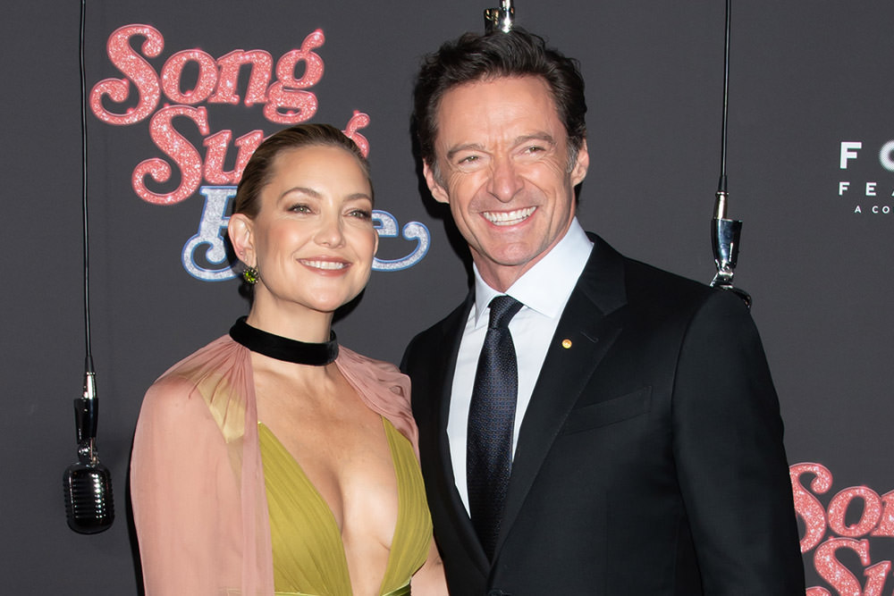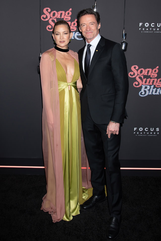 Hugh Jackman finally deigned to dress at the same level of his co-star Kate Hudson for the New York premiere of Song Sung Blue.