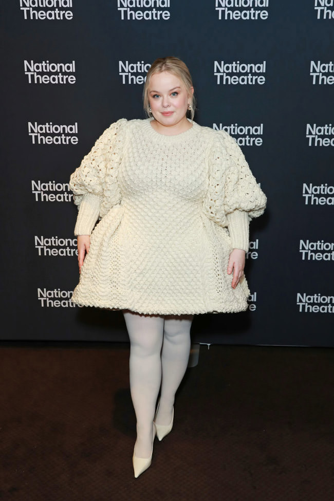 Hey, remember when we said yesterday that we weren’t likely to have any more IN or OUT posts for the rest of the year? We lied! Or at least, we were proven wrong when Bridgerton star Nicola Coughlan stepped out onto the red carpet for the press night after party for The Playboy of the Western World, in which she’s appearing at the National Theatre. We always say that theater opening nights are not the time to be bitchy about what the stars are wearing, since they literally just got off work, but in typical Nicola fashion, she wore something that practically demands you form an opinion on it.