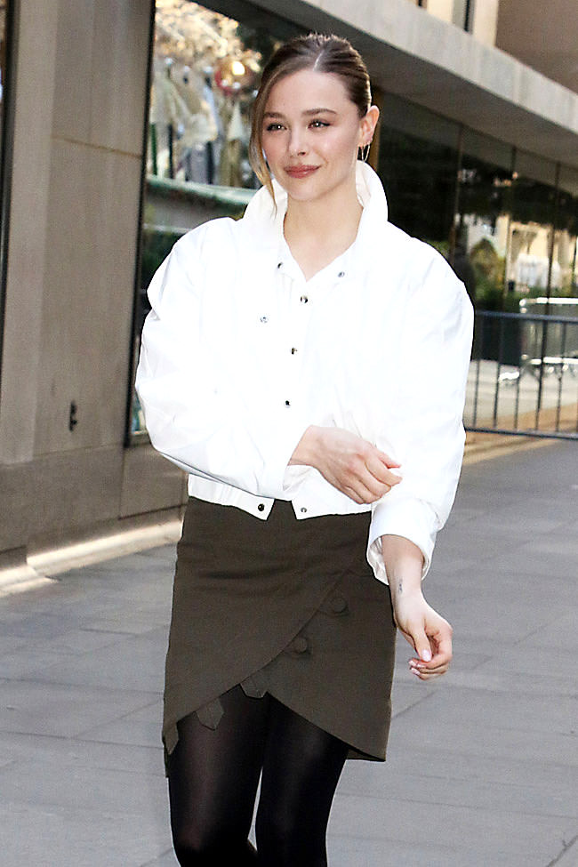 We’re cleaning out some of our folders from last week and we wondered if we should just let Oh. What. Fun. star Chloe Grace Moretz’s look for The Today Show last week go, since the film debuted to terrible reviews over the weekend. But we’re afraid her skirt situation is too weird not to take a look.