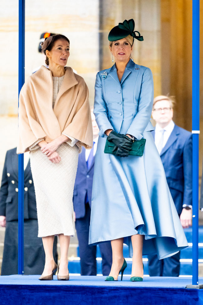 Queen Max gets it (mostly) right again! And this time, she did some color-coordinating! Attaqueen! Queen Maxima joined King Willem-Alexander in Dam Square in Amsterdam to welcome Finnish President Alexander Stubb and First Lady Suzanne Innes-Stubb during the state visit of Finland to the Netherlands..