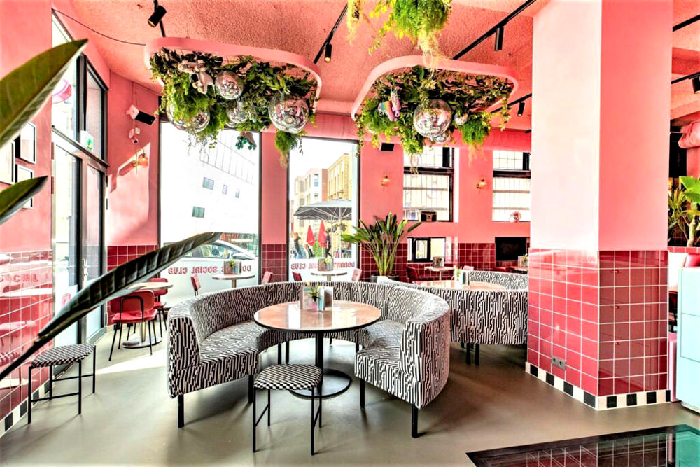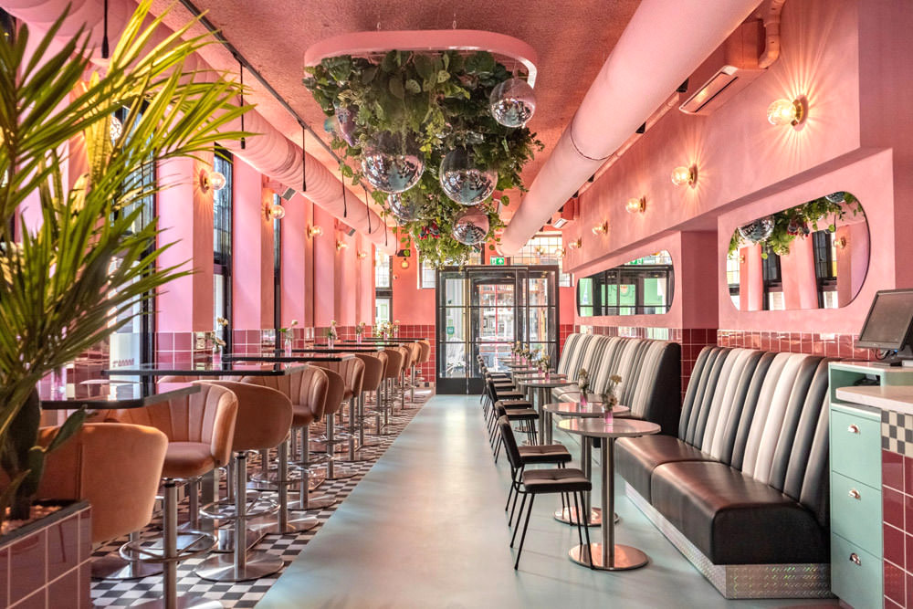 Today, we’re thinking pink. It’s TUESDAY and we’ve decided that the day calls for pastels and cool mid-century design. Slide into a banquet and let’s start ordering things that are very bad for us.