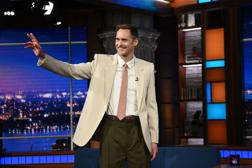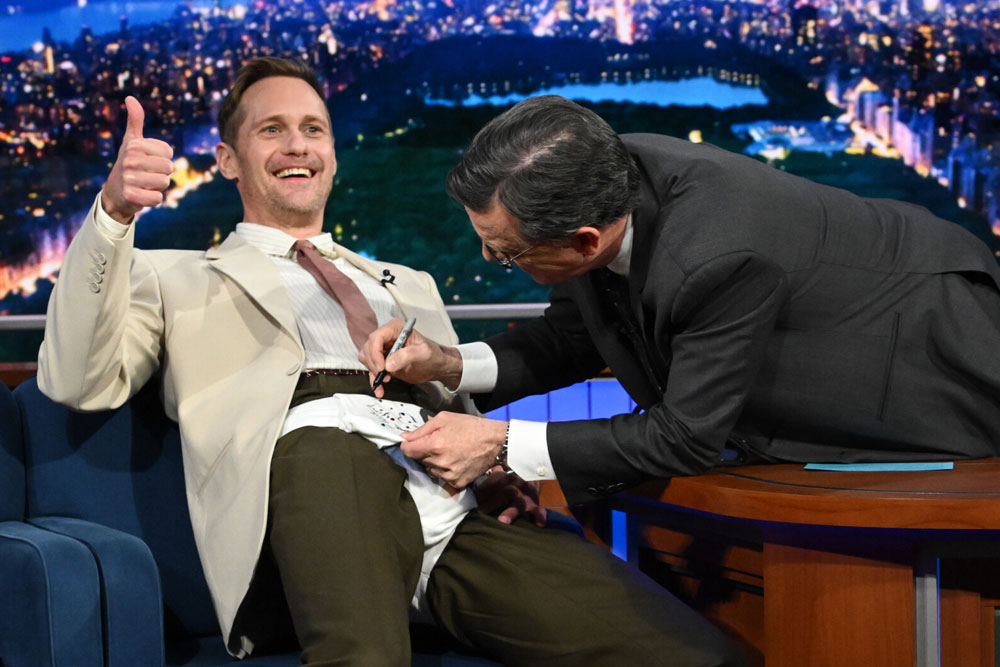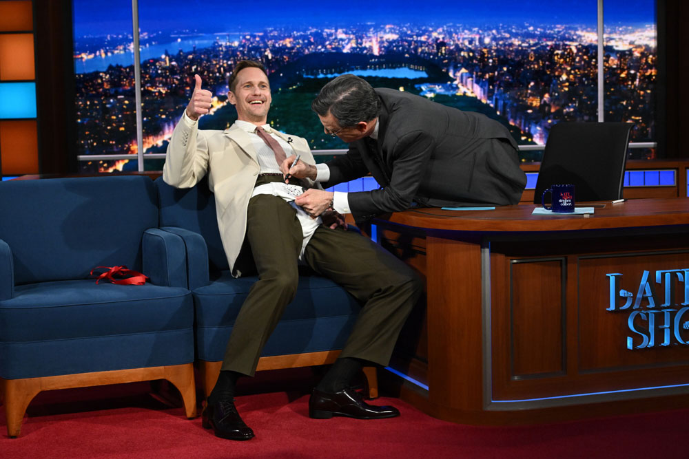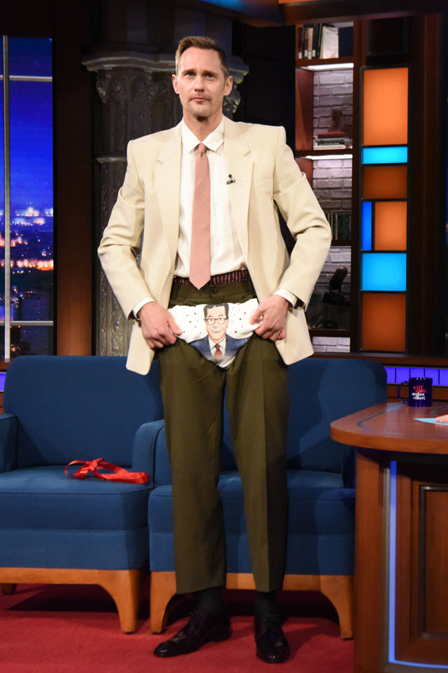 Pillion star Alexander Skarsgard came to The Late Show in his Colbert panties. You heard us.
