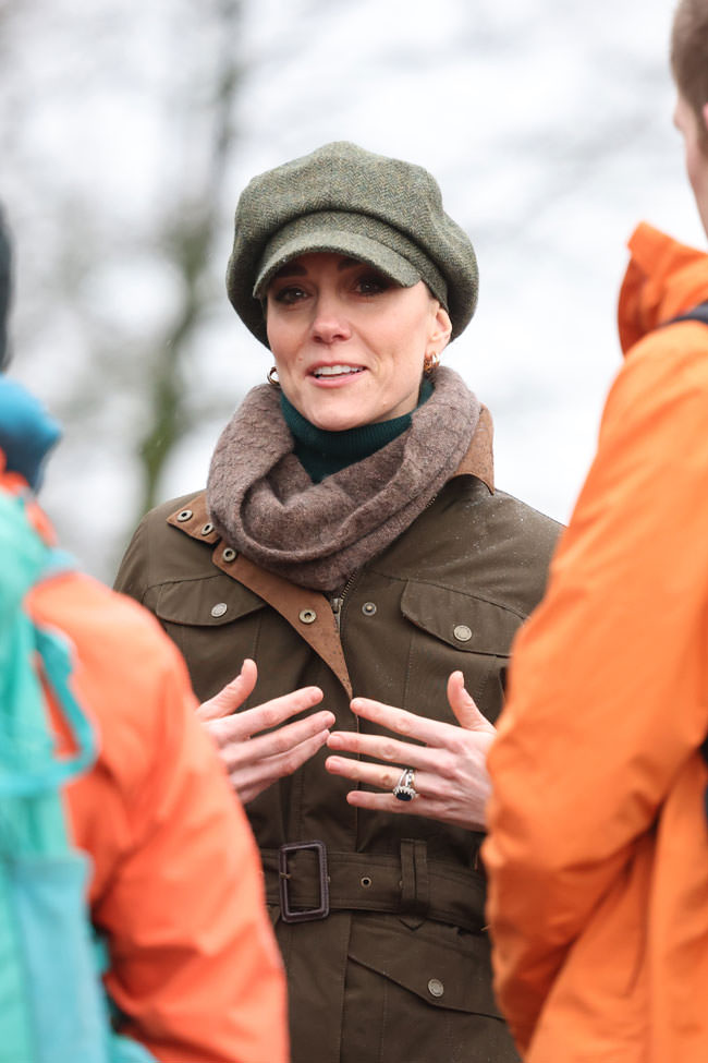 After visiting with traumatized children yesterday, Princess Cathy ditched her Kindergarten Cathy style, got herself braided up, and jumped into her very favorite style of all: Sporty Cathy. If you can get this princess in some boots and skinny jeans, she’s a happy girl. The Princess of Wales joined a “supporting wellbeing walk” in the Peak District with Mind Over Mountains, a mental health charity offering therapeutic outdoor experiences.