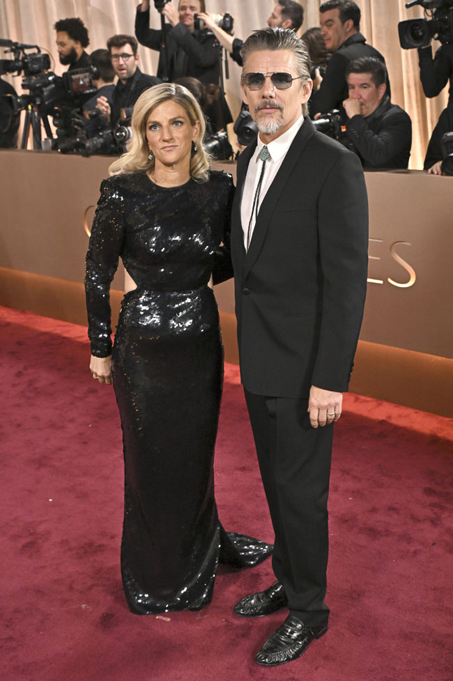 Her dress is pretty but it kind of looks like a wall of keys behind a concierge’s desk. As always, his fit is perfect. We love the color story.