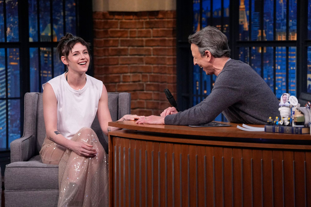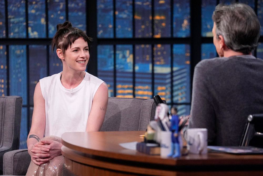 We’d ask if we got it right, but we are utterly confident that you are sitting there in total shock at the moment. The director of The Chronology of Water was on her way to Seth Meyers’ studio in this little getup: