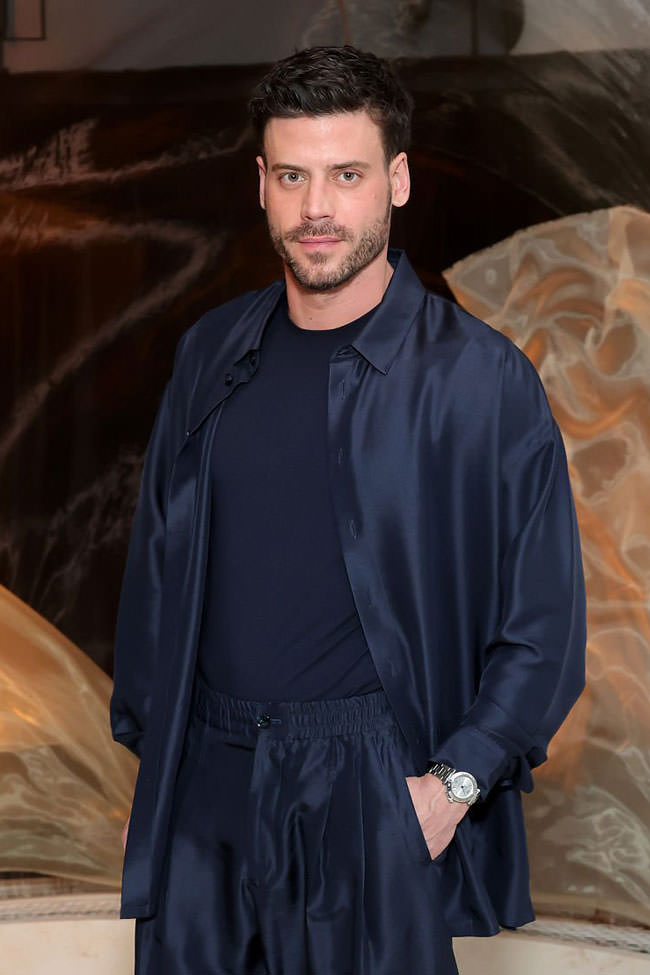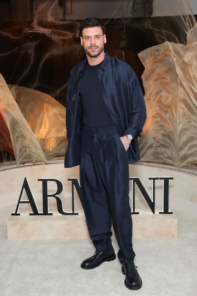 We hope they gave him lots of free merch after the week he’s had. That ribbed waistband wounds us, but the color looks great on him and there’s something luxe and sexy about the way it straddles the line between suiting and loungewear. Love the boots.