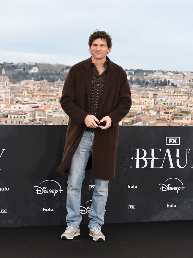 We’re not mad at it, The coat and sweater are nice. We think there are dressier-looking options in jeans and sneakers, but that gets into serious nitpicking. No matter how romantic and picturesque the setting, this is still a photo call for yet another Ryan Murphy FX body horror soap opera.