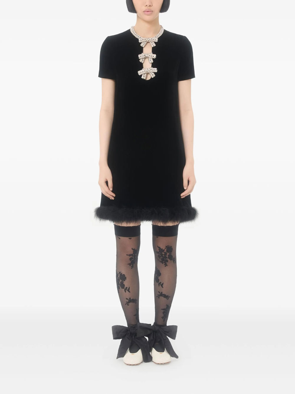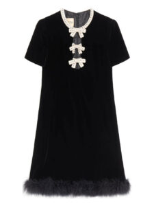 – Valentino Garavani Embroidered-bows Feather Mini Dress