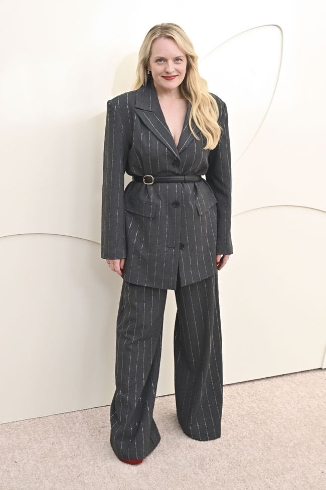 That’s the sharpest look we’ve seen her wear in ages. The suit’s a little big on her, though. And we can’t help thinking the belt was an addition by the stylist because the jacket just doesn’t look like it was designed with that in mind.