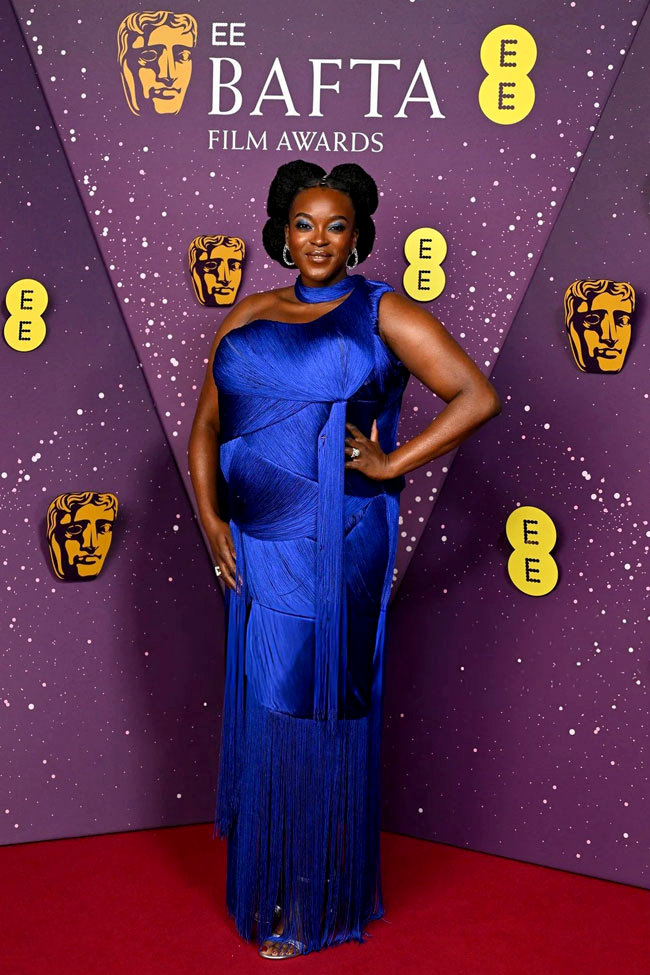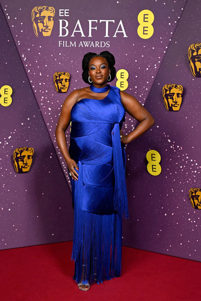 Congratulations to Sinners star Wunmi Mosaku for BAFTA award for Supporting Actress. We’re thrilled not only for the recognition, but also because she seems to be getting access to better and better fashion on her way to the Oscars. As is her preference, she opted for a tricky, complicated design from British Nigerian designer Ahluwalia.