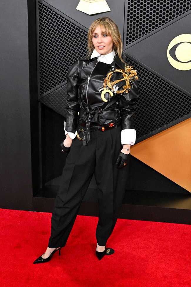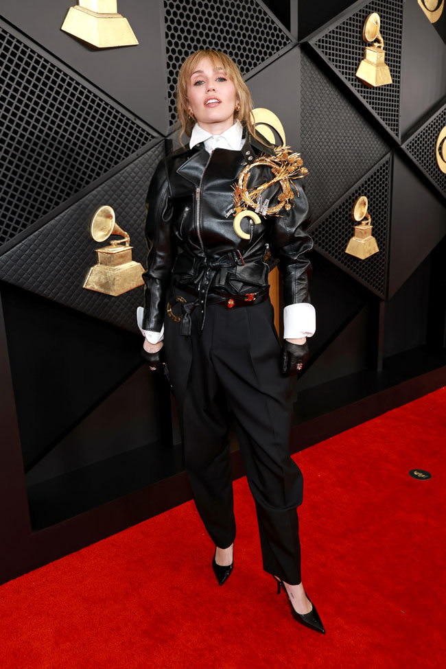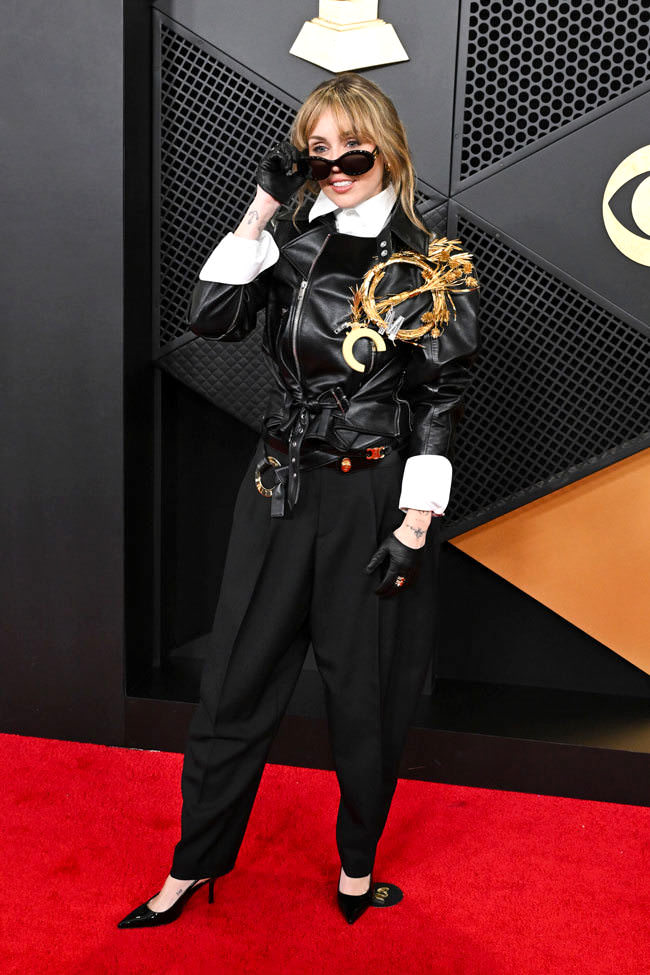 We’ve been covering her a long time and we don’t get this at all. For the past couple of years, she’s been indulging in retro-tinged ’80s-esque glamour, but this looks like something an honoree at the TCM Film Festival would wear. The entire bottom half reads like ’90s office wear and the top looks like something Jane Fonda would wear to look trendy. That mess on the jacket does nothing at all for it. It doesn’t distract from the rest of the outfit. It only winds up making her look overwhelmed by it. The gloves are such a cliche they’re a little cringey. Keep the jacket and start over. You can interpret a moto in a lot of interesting ways, but this isn’t one of them.