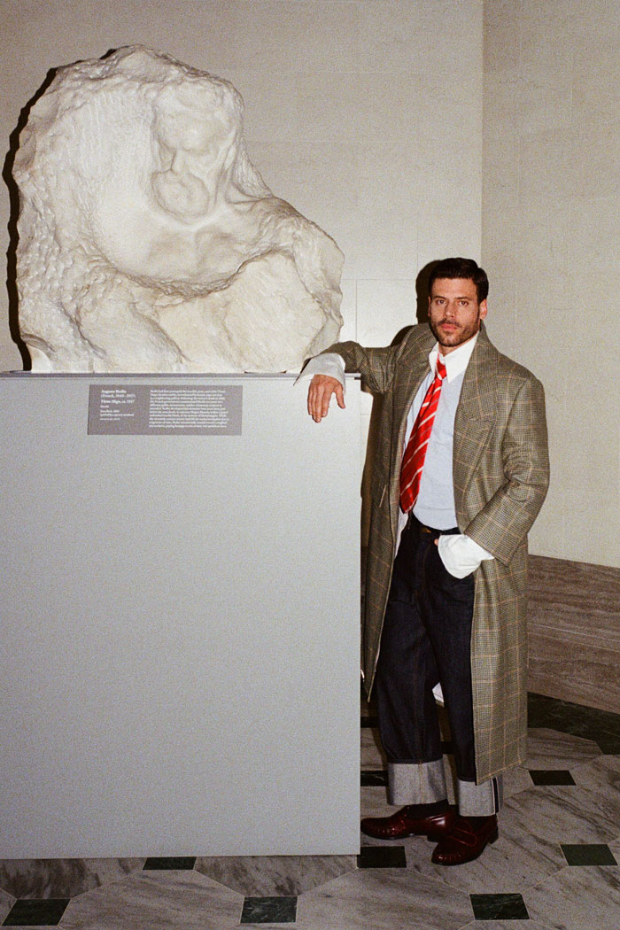 This must be a fun time for all of the Heated Rivalry boys. We’re in the middle of awards season, the Super Bowl and the Olympics, which means life for any hot star who isn’t shooting anything at the moment is a series of party invitations and a pile of free clothes. It’s honestly the only time we’re ever a little jealous of celebrities. On the other hand, sometimes you find yourself standing in front of cameras at an event, wearing something incredibly goofy that you would certainly never sport on your free time. In other words, here’s Francois Arnaud, forced to work some very goofy proportions at a GQ and Thom Browne-hosted Super Bowl party.