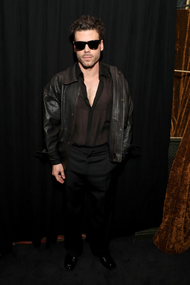 In the interests of living in the real world, we acknowledge the insane level of scrutiny this friendship+ has inspired on social media, but we refuse to engage with a bit of it. Shut the hell up, everybody. Grownups are being grownups. Or not. The much more important thing to consider here is that Connor is tits-out and we’re proud of him. He and his team are figuring out how to play up his hotness in a way that feels stylish and unique to him. They just need to learn to leave his curls alone. Love the suit and the color combination for him. Sorry to all the TikTok folks who are enraged by this, but François is serving absolutely classic Hot Daddy — the leather, the open shirt, the shades, it’s all standard to the point of cliche but it’s also very well suited to him.