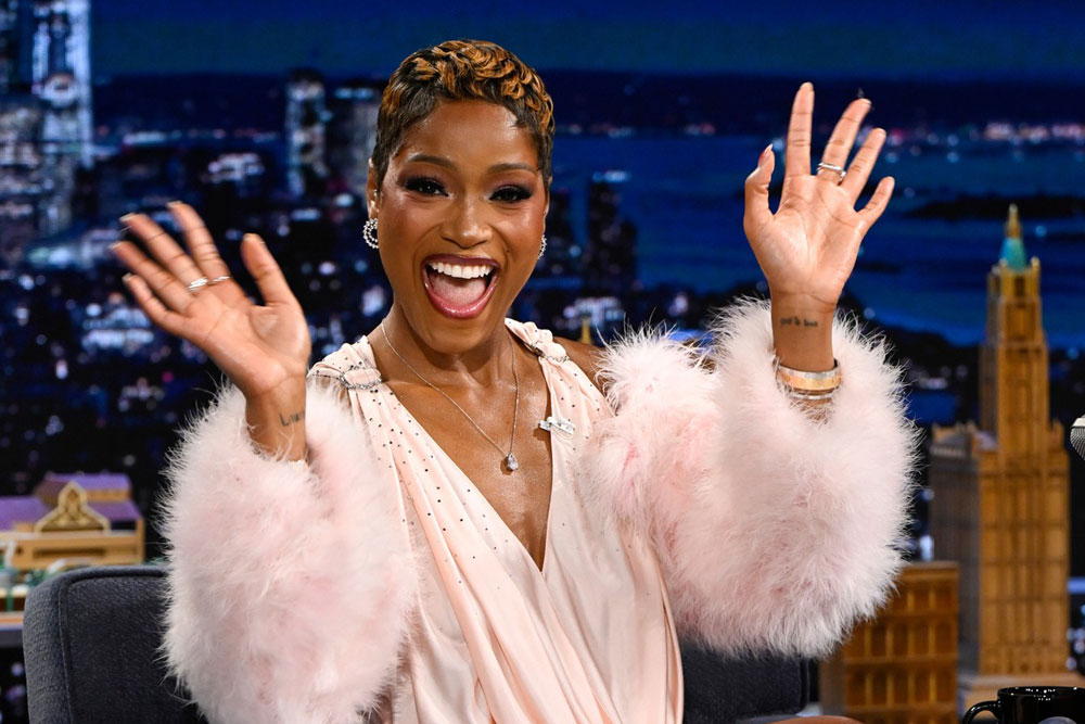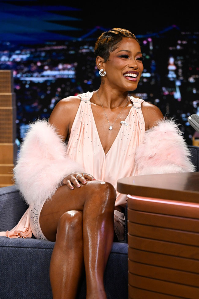The ‘Burbs star Keke Palmer opted for tacky-cute and very shiny for her visit to The Tonight Show. First, the tacky-cute: