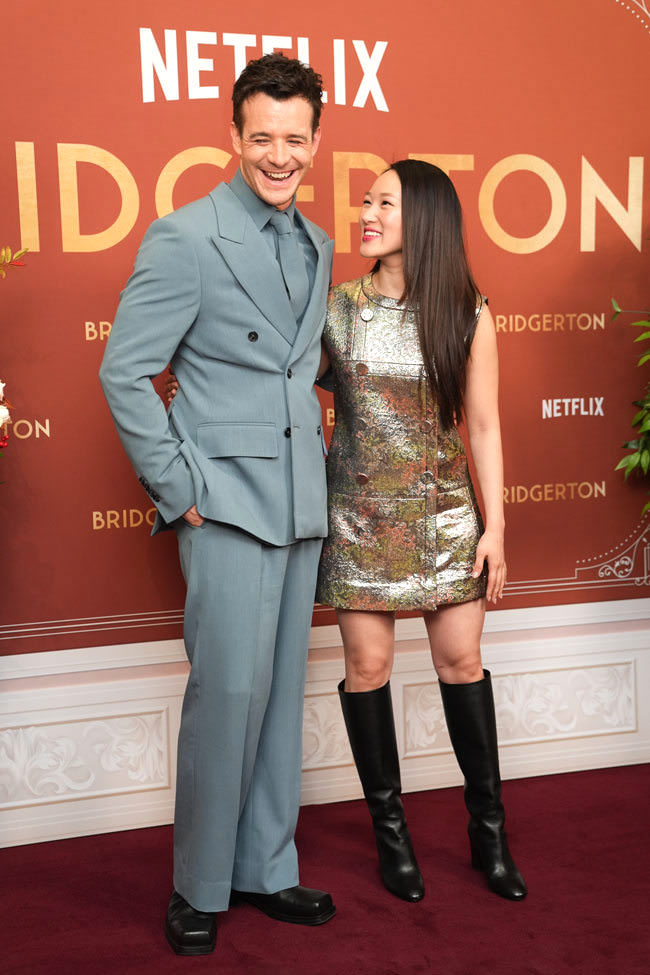 Bridgerton stars Luke Thompson and Yerin Ha continue to sell season four like the rent is due, although you won’t hear us complaining when stars decide to get dressed up and pose for pictures. You will, however, hear our opinions about their efforts. The two got themselves gussied up once again for a special BFI screening in London.