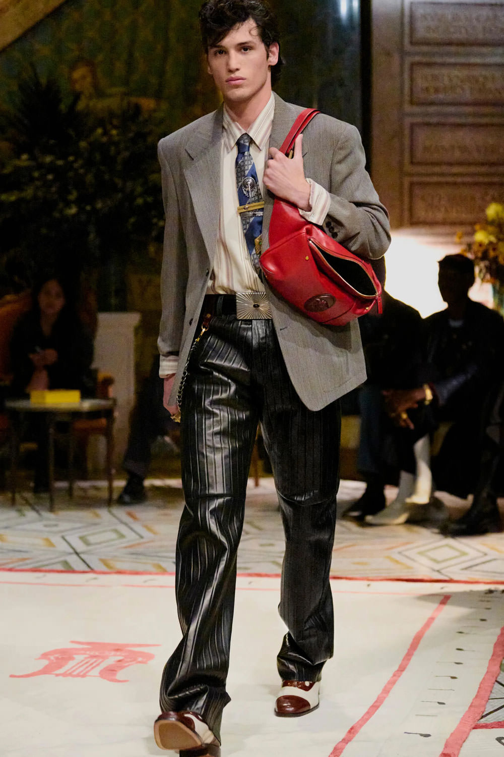 We’ll be honest, we don’t think the combination works at all, but it’s interesting, eye-catching, and more or less amounts to theme-dressing for the film. We’re a bit torn because we love every item he’s wearing, but very few of them coordinate that well. Putting aside how great the entire bottom half would look with a simple white shirt, we don’t think the tie, shirt and jacket go together. It’s interesting, because it almost look cohesive at first glance, probably because he’s so well-suited to it, but the longer you look at it, the more discordant a look it becomes.