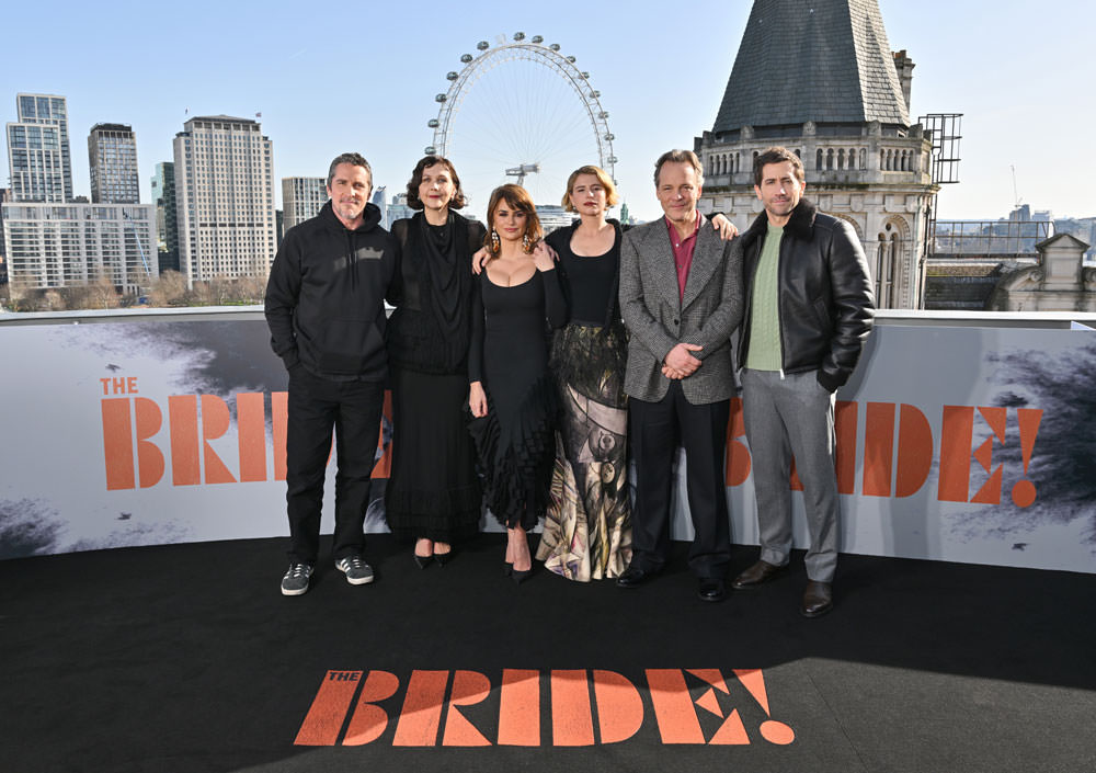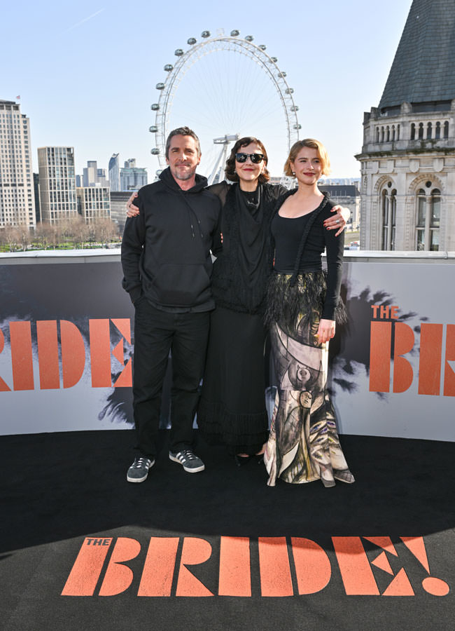 It was a family affair for director Maggie Gyllenhaal as she was joined by her husband Peter Sarsgaard and her brother Jake Gyllenhaal, along with hardest working woman in show business Jessie Buckley and the rest of the cast of The Bride! for the required London rooftop photo call.
