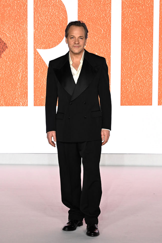 Love when he puts a dangly earring in. It’s a fine tux, but the shirt is incredibly sloppy and the pants are way too long. Also, you’re in a tux that costs thousands of dollars. The least you could do is shave and put a little product in your hair.
