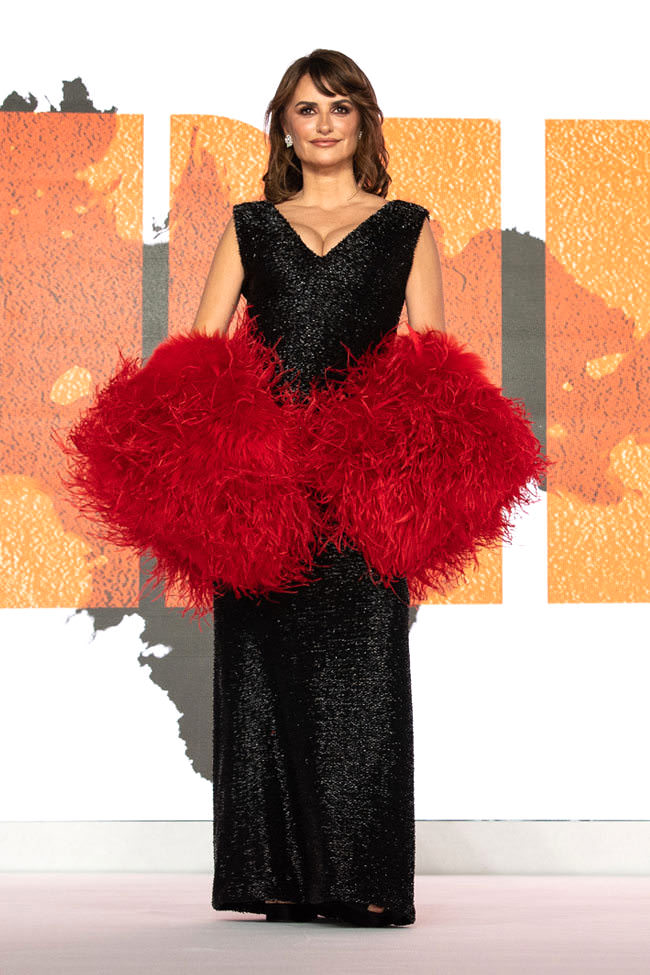 The dress is way too stiff and it’s giving her babyheads, but the overall look is fun and glam. We’re tired of marabou on the red carpet, but this is at least a fun way of deploying them, if not particularly practical. But we don’t think she’ll be kneading any bread or darning any socks this night, so a little fabulous impracticality is fine.