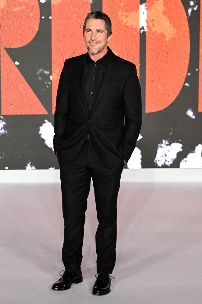 If you’re going to wear a black suit, put some effort into and make some interesting choices. The difference between this look and Christian Bale’s is vast. We’d have liked it if the tie and pocket square matched, but that’s not a dealbreaker by any means.