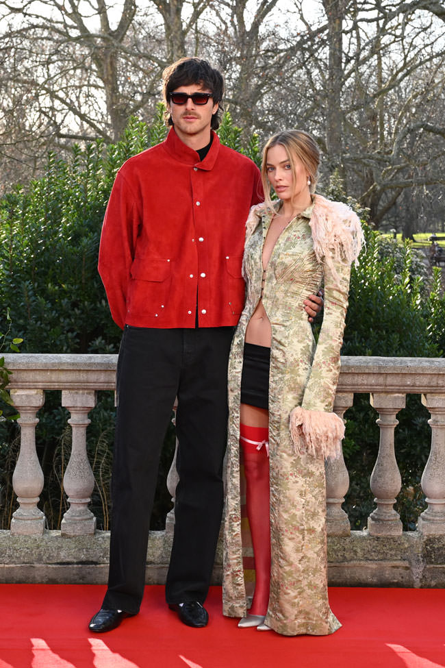 Jacob Elordi (in Bode) and Margot Robbie in (Archival John Galliano)