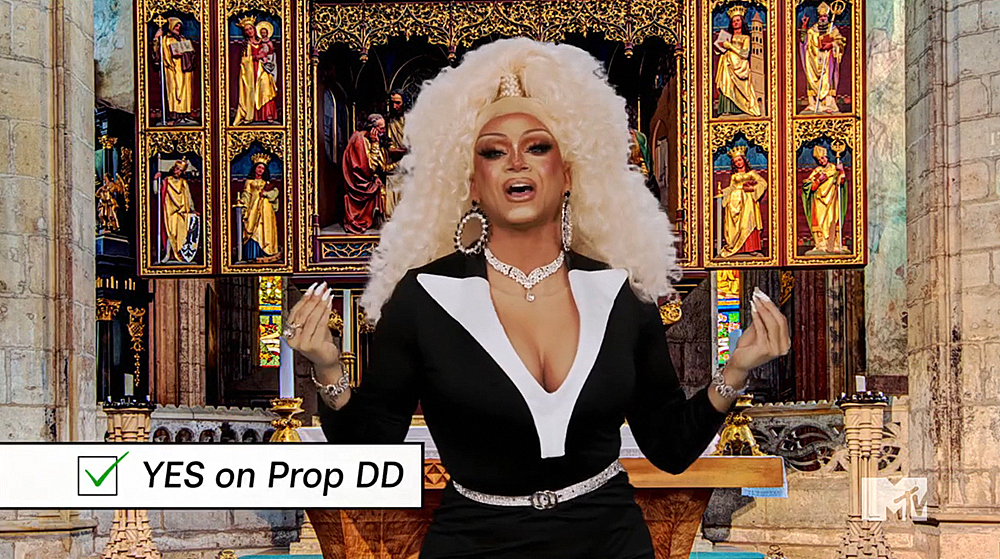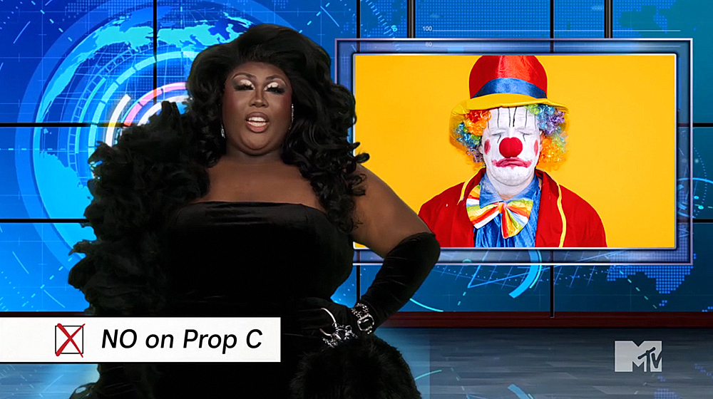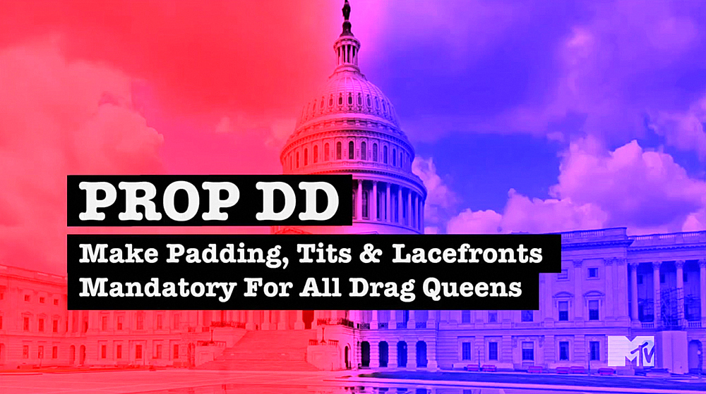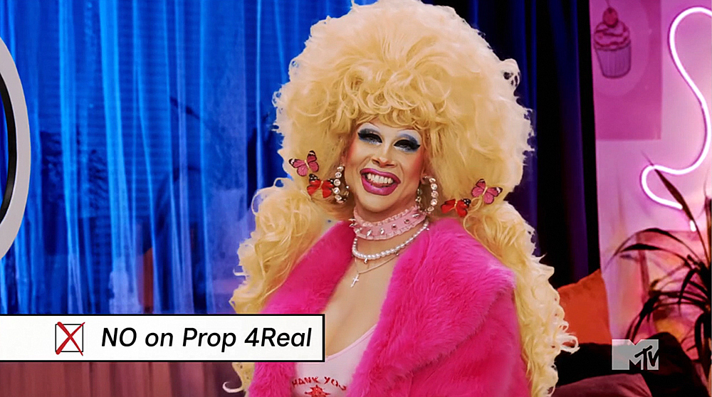 Drag Race gets a little political (but not really) and the queens are tasked with making issue-oriented politics ads — without anything approaching an actual real-world issue. To be fair, as much as we might want to argue that the times call for a more direct approach from the queerest show on mainstream cable in tackling all the ways the LGBTQ community is under threat, we don’t think it would have been a good idea to hand the queens actual, important issues to debate. No shade, but the majority of Drag Race queens would not make effective political pundits, in terms of having a grasp of the issues. Imagine if they’d been tasked with debating the existence of drag brunches or trans women competing in sports. But before we get into all of that…