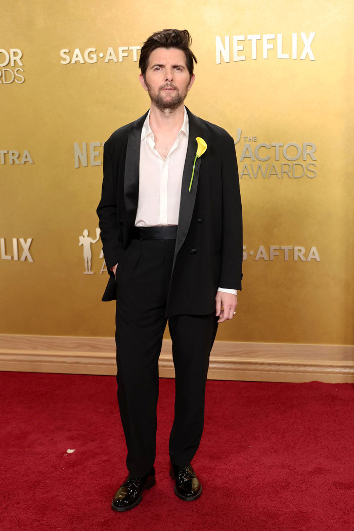 Celebrity men, let us help you out here. If your stylist is trying to talk you into some sort of Vegas Sleaze look, take a good long look at yourself in the mirror and ask yourself, really ask yourself, “Is there perhaps a reason why I haven’t tried to dress like Dean Martin after a three-day bender before now?” This is bad, Adam. The suit’s nice, the flower’s cute, but the grooming is terrible and you just aren’t a semi-sheer shirt kind of guy. There’s no shame in it.