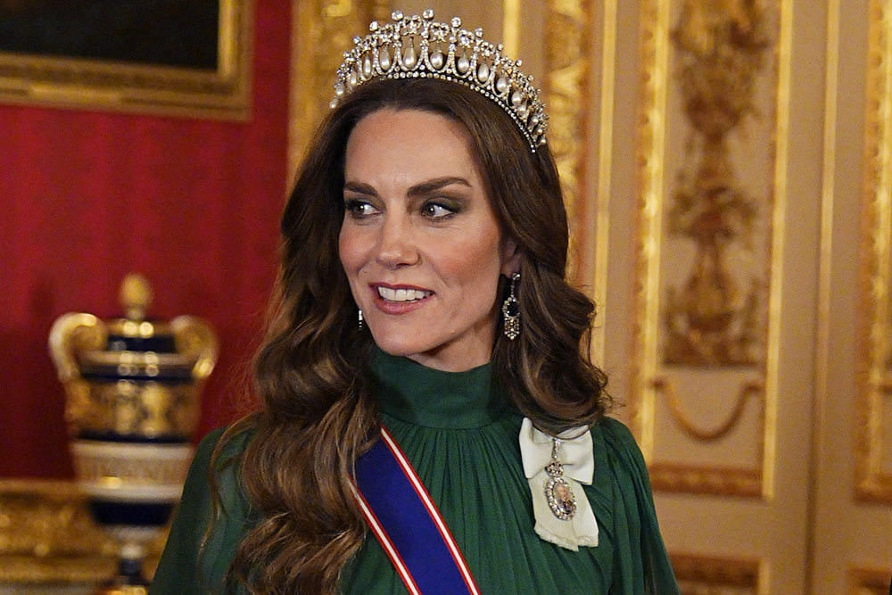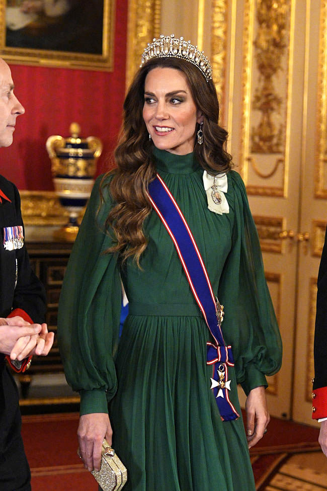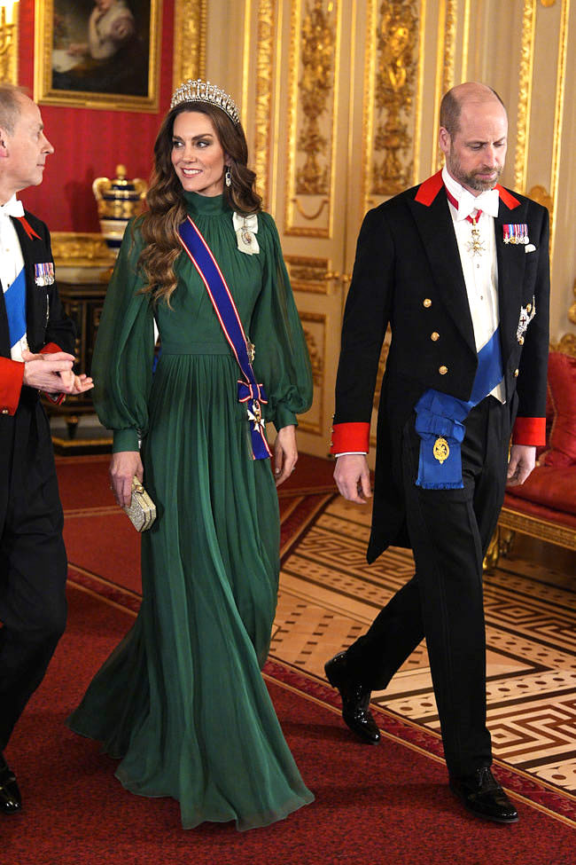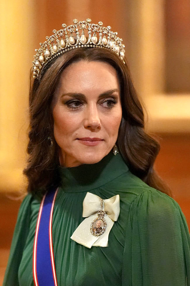 It was another Tiara Day for Princess Cathy as she headed to the state banquet for President Bola Ahmed Tinubu and First Lady Oluremi Tinubu of Nigeria at Windsor Castle. We’re a day late getting to this one because of Oscar blogging, but there was no way we were going to let this tiara moment pass without opinionating.