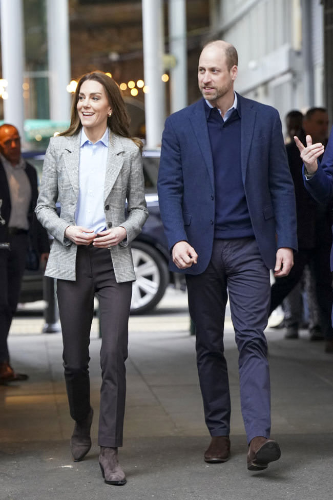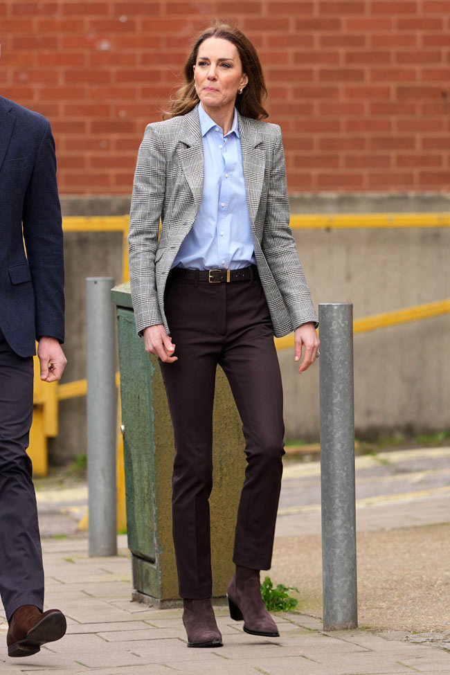 As royal photo opps go, it’s a pretty cute one. The blazer is very nice and we’re thrilled to see her mixing up colors a little instead of matching everything. The boots are cute. These two love their suede footwear.