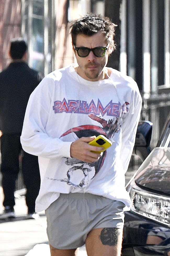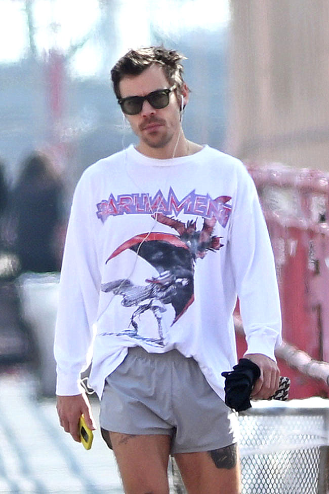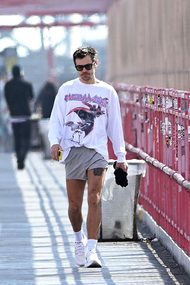 That’s it. That’s the post. We suppose there’s some sort of fashion commentary to be made here; some musings on the ever-changing lengths of men’s shorts or how ’80s-style activewear seems very trendy at the moment, but really, you’re here to look at Harry in his tiny shorts and we can respect that.