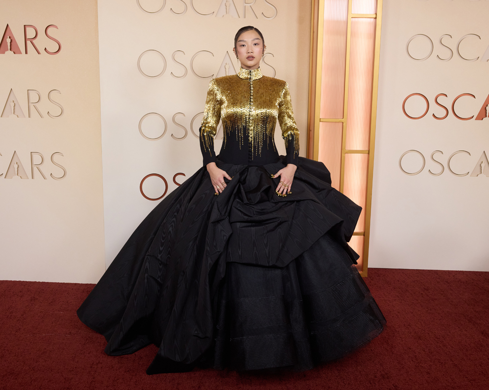 All three of the HUNTR/X ladies dressed in gold for the red carpet, which is the kind of theme-dressing we can get behind. This is strangely powerful but also beautiful. It’s giving Bene Gesserit at the Met Gala.