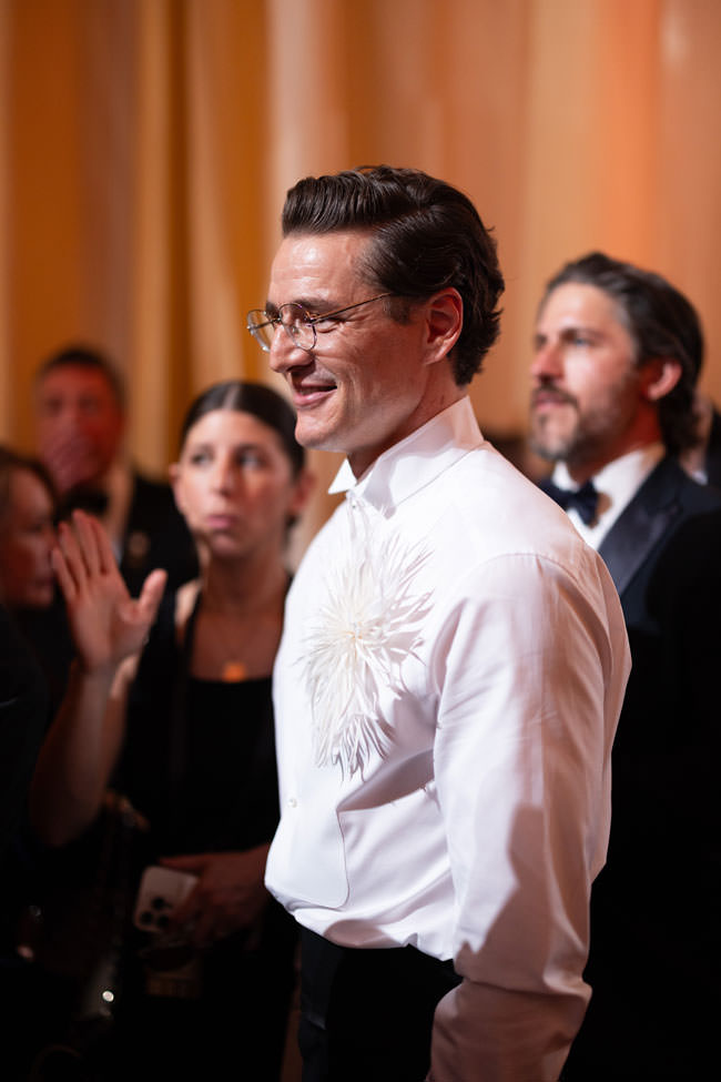 Look, we don’t know if the star of The Fantastic Four, The Last of Us, and The Mandalorian is gay, but we do know his Carrie Bradshaw circa 2003 flower sure is. We love how impeccable the grooming and styling is here, from the shock of seeing him clean shaven, to the perfectly coiffed hair, to the fresh-from-the-box shoes. It’s a fun, unusual take on men’s formalwear and it works because it’s flawlessly executed. He looks legitimately great and we love that he’s feeling free enough to dress this way at this point in his career.