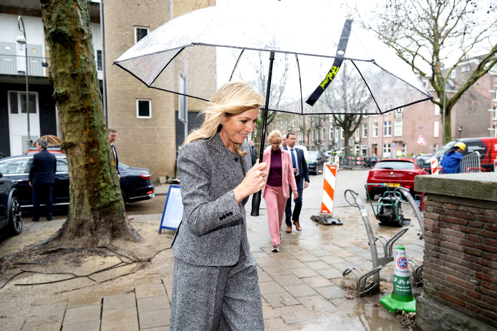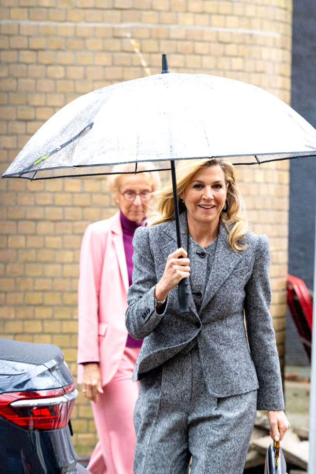 Queen Maxima made a visit to the Anne-Bo Foundation in Amsterdam, which focuses on providing aid and guidance to young girls from impoverished or refugee backgrounds with educational deficiencies. This wasn’t going to be the kind of royal engagement that calls for big goofy hats or focus-pulling jewelry (two things your girl loves), so she wisely opted for a chic, sober suit that turned out to be the perfect choice for the weather.