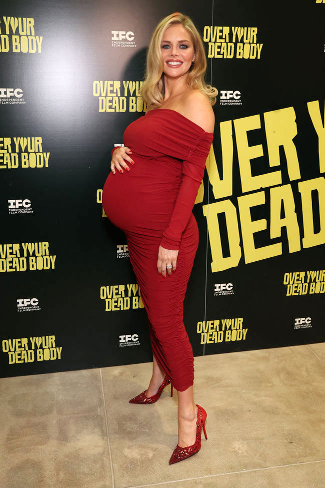 We were kind of wondering why Samara Weaving wasn’t out promoting Ready or Not Here I Come along with her co-stars Sarah Michelle Gellar and Kathryn Newton, who have been shouldering the burden nicely. When she stepped out onto the red carpet with co-star Jason Segal for her other new film Over Your Dead Body, we got our answer. See if you can figure out the hidden reason why Samara hasn’t been out relentlessly promoting her projects: