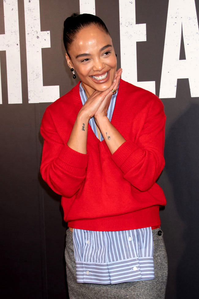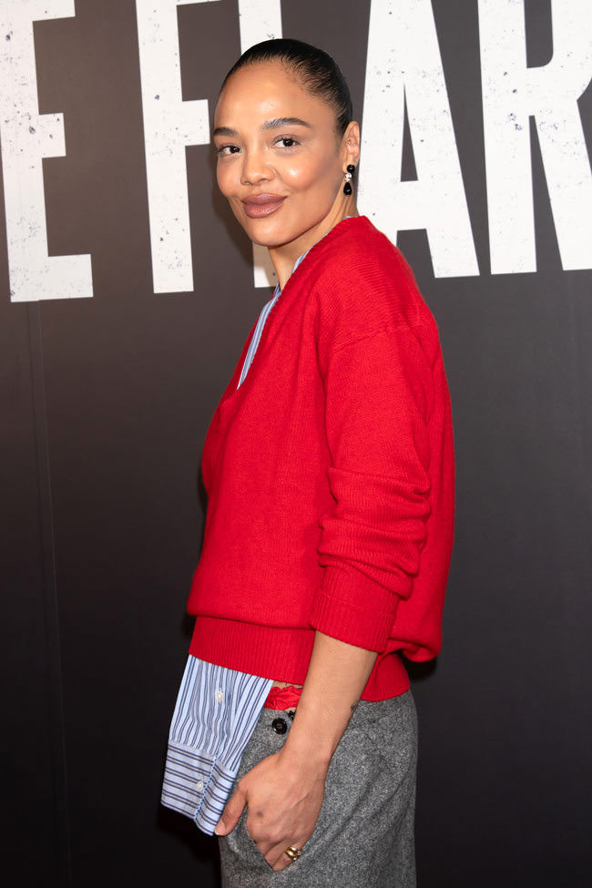 Tessa Thompson came to the opening night party of her play The Fear of 13 in an ensemble that helpfully provides an illustration of the sentiment “People in the fashion industry have lost their goddamn minds.” To wit: