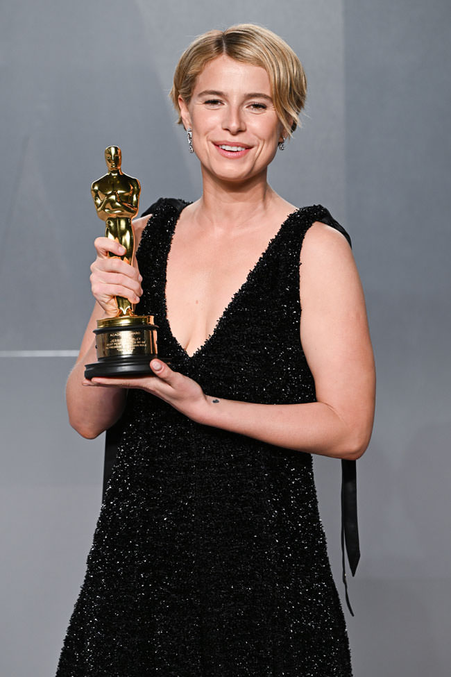 By putting on your eating dress and partying. Protect this queen and make sure she gets all the burgers. We just love when stars take “FUCK YEAH I WON THE OSCAR” approach to their wins. It’s the only response that feels human to us. Anyway, she looks comfortable, but just glam enough to pose for her victory shots.