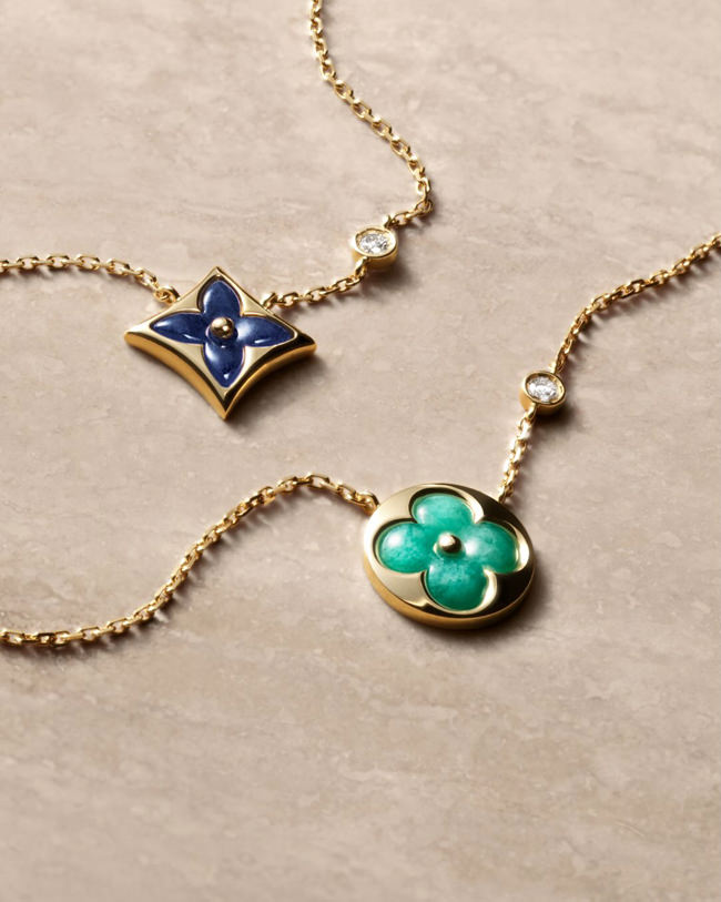 Louis Vuitton Color Blossom. Chromatic expressions of the Monogram Flower, sculpted by signature rounded volumes, are embodied by House Ambassador Ana de Armas — unveiling a new navy blue sodalite set in vibrant yellow gold, punctuated by radiant diamonds.