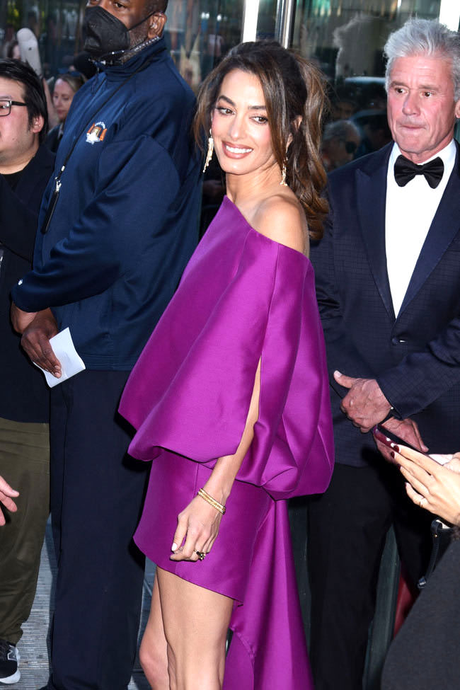 George Clooney came to the Chaplin Awards Gala Honoring George Clooney because what else are you going to do? Skip it? Still, it’s kind of weird to do this right after his last film, which was entirely about skewering these sorts of lifetime achievement galas for actors. Anyway, we’re not here to talk about him, of course. The tux is very nice, as always, but all of the interest lies in what his accomplished wife Amal brought to the proceedings.