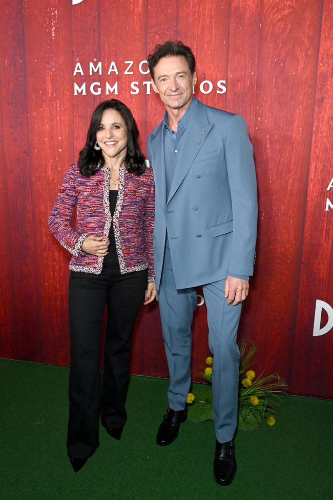 Julia Louis-Dreyfus (in Chanel) and Hugh Jackman (in Dolce & Gabbana)