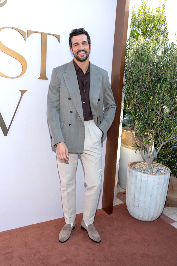 It kind of amazes us that he’s a model, because he’s got negative swag in front of a camera. Nice outfit, but the shirt is too dark among all those light pieces.