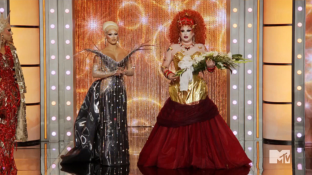 We have the same issues with this finale as we’ve had for probably the last ten or so. All of the tension and creativity exits the show all at once and we’re thrust into this very canned, phony take on Drag Race, with obnoxious crowd noises that don’t actually match the small, rag-tag crowd of artificially excited people the camera pans to, and pre-packaged production numbers we never saw the queens rehearse or prepare for. The results are always very flat. If you’re not going to mount the finale in an actual theater, with a crowd that doesn’t look like they were paid to be there, come up with another format.