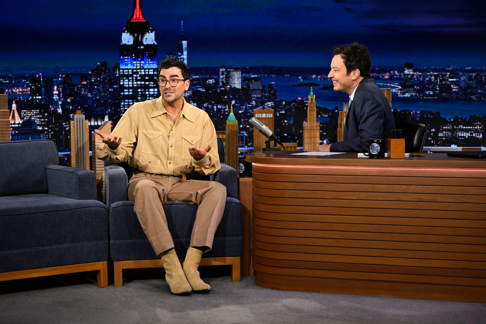 We noted the other day that Big Mistakes star Dan Levy was clearly trying to get away from the David Rose style that’s defined his look for most of the last decade. Unfortunately, it can be difficult to get away from your signature style and any attempts to come up with some sort of radically new look for yourself bear the risk of leading you straight down the path of style disasters. We won’t claim his outfit for his Tonight Show appearance is quite that bad, but people…